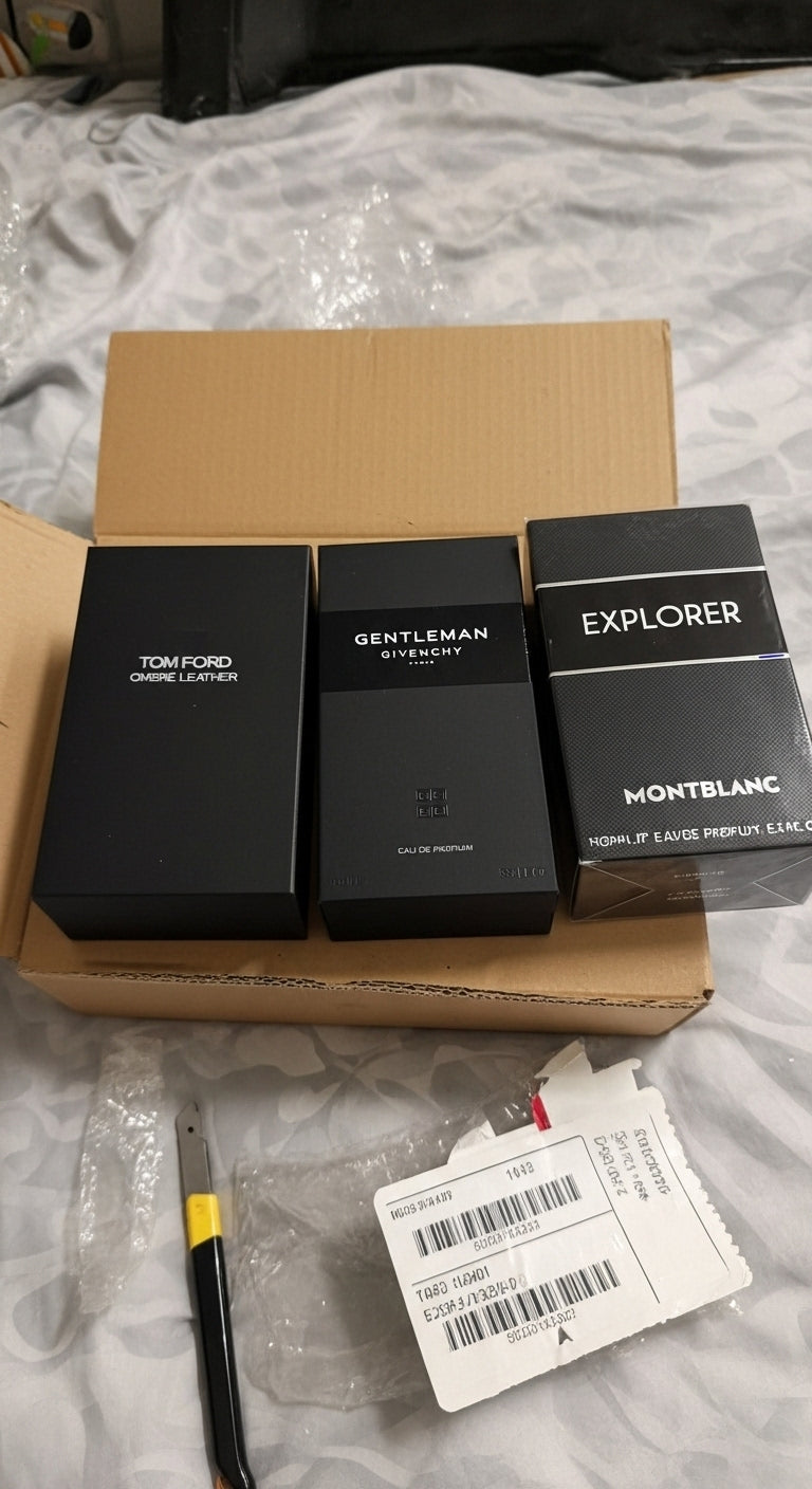 Conjunto de 3 perfumes Tom Ford Ombre Leather, Givenchy Gentleman, Montblanc Explorer 100ml
